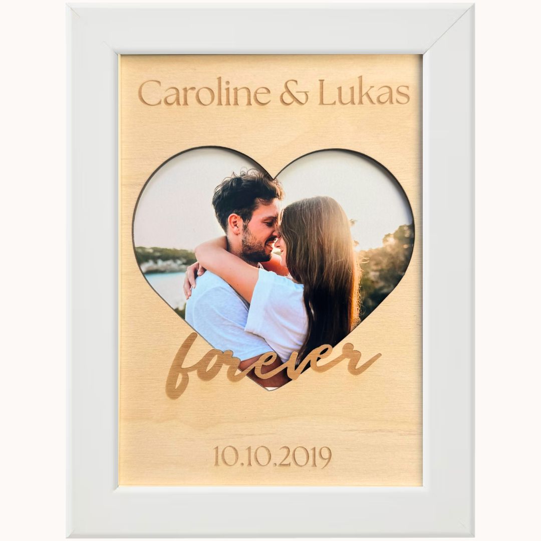 Überrasche deinen Partner oder ein geliebtes Paar mit einem Geschenk, das von Herzen kommt und sie jeden Tag erfreuen wird. Bestelle noch heute deinen individuellen Holzbilderrahmen "Forever". Eure Namen, eure Botschaft, euer besonderes Andenken. 💖🎁